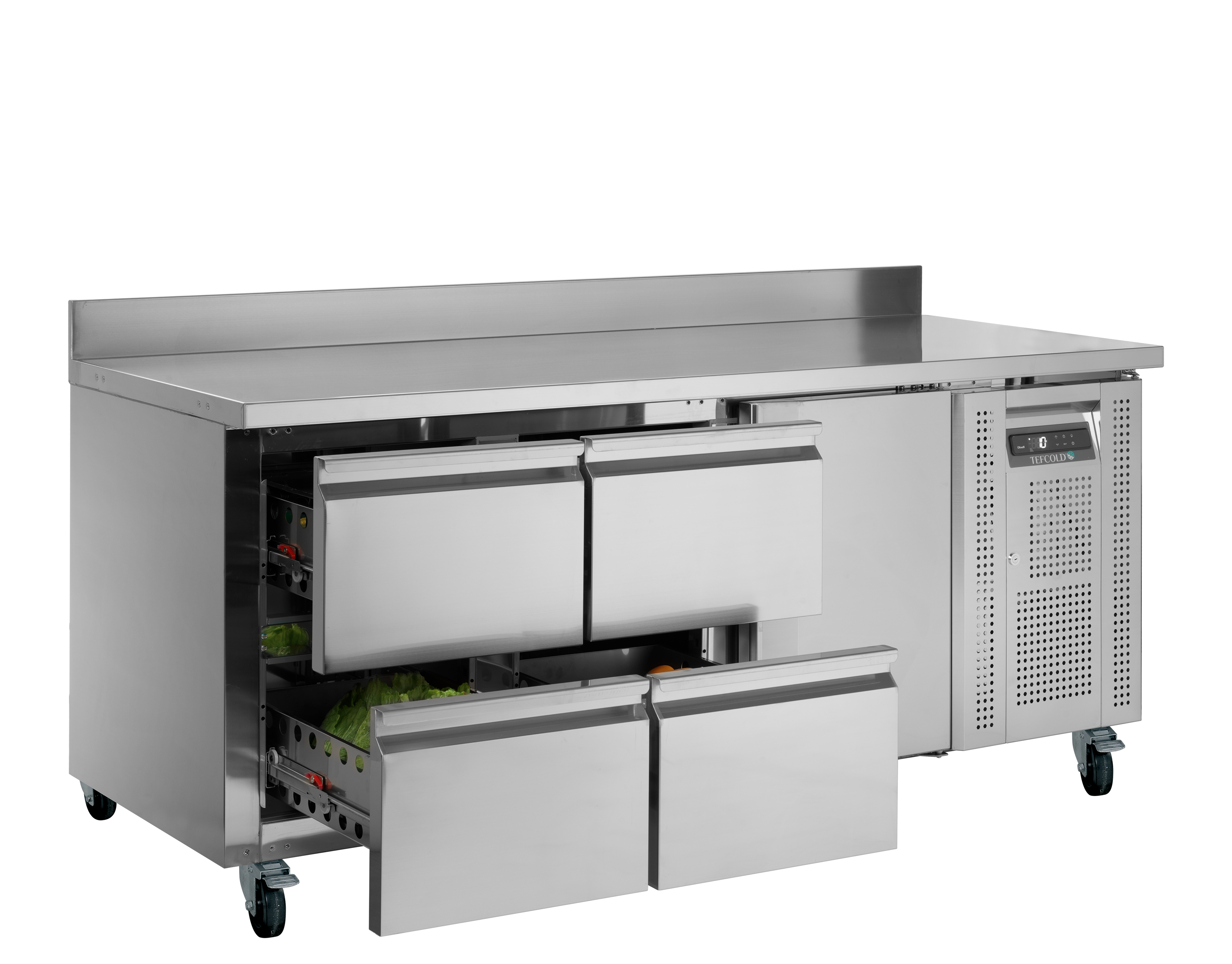 The CK range of counters is made for professional kitchens and therefore offers a durable stainless steel construction. Its ventilated system maintains consistent temperatures, and an electronic controller makes adjustments easy. The CK range is available in numerous constallations with solid doors, glass doors, or drawers and with or without a splashback.