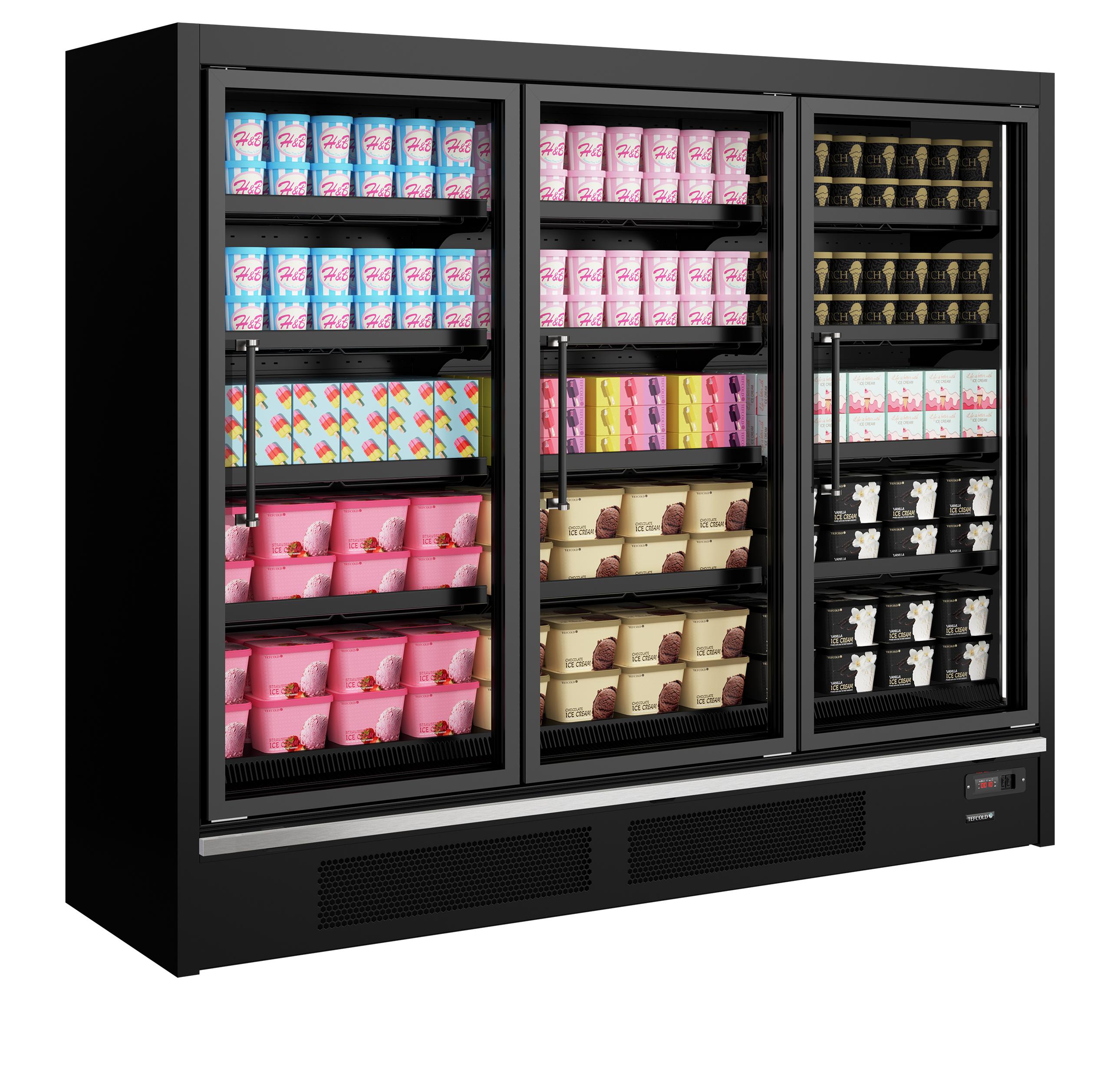 | Door Number & Type | 3 hinged heated glass doors |