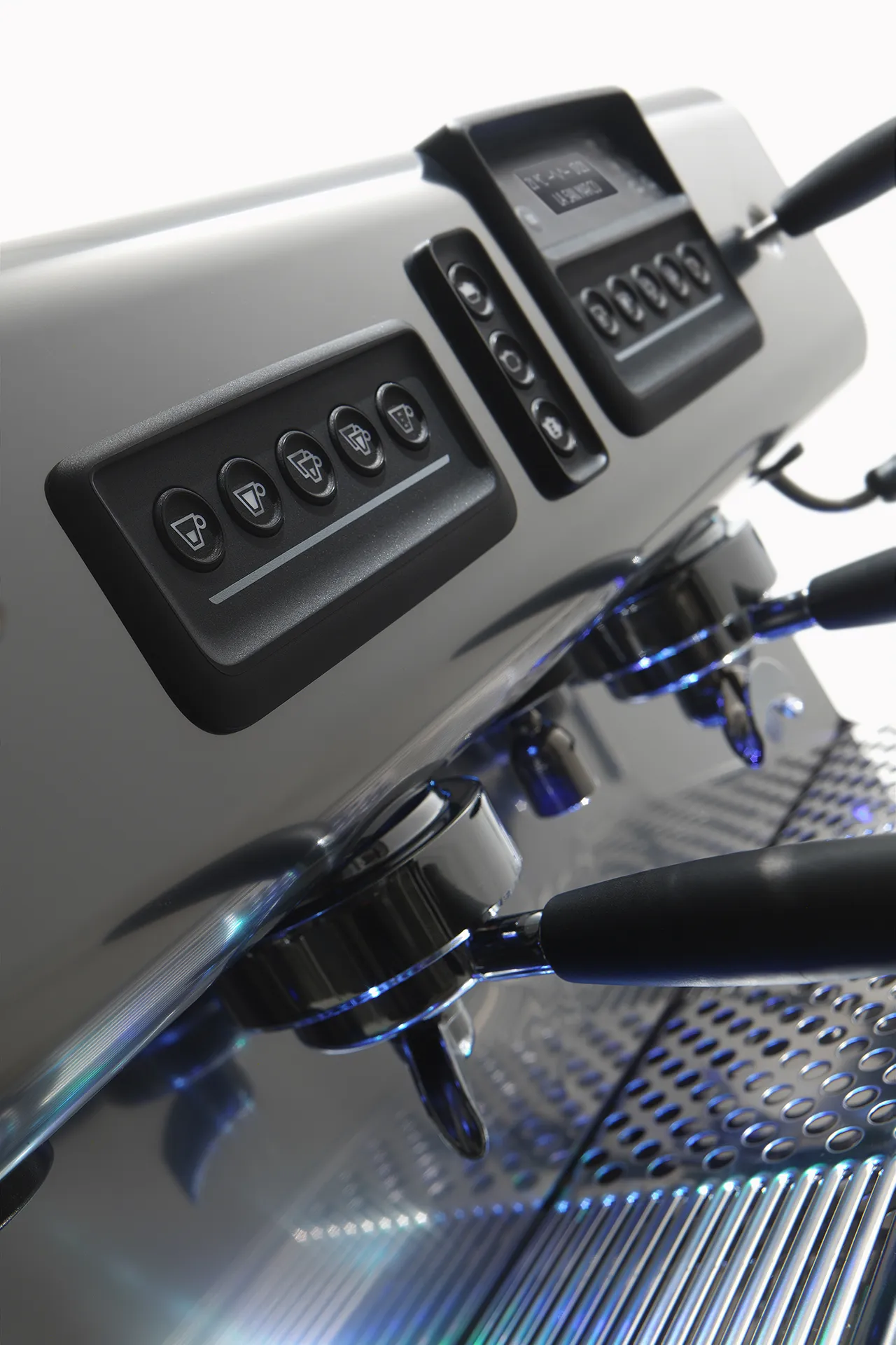 The size of the keys and the intuitive graphics offer complete, easy control over all the machine’s functions. Four pre-settable dosages, plus a start/stop key for each group. The LEDs incorporated into the keypad also provide useful information to the barista regarding the status of the machine and of the coffee being dispensed.