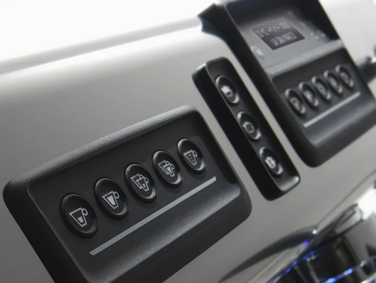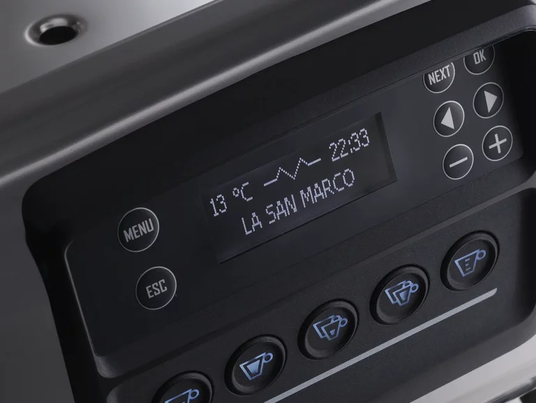 The new display designed by La San Marco gives baristas real control over the machine’s performance and working parameters, right at their fingertips. They can programme dosages, boiler temperature (controlled using a PID system) cleaning cycles, energy saving mode activation, and finally, the settings for the grinder.