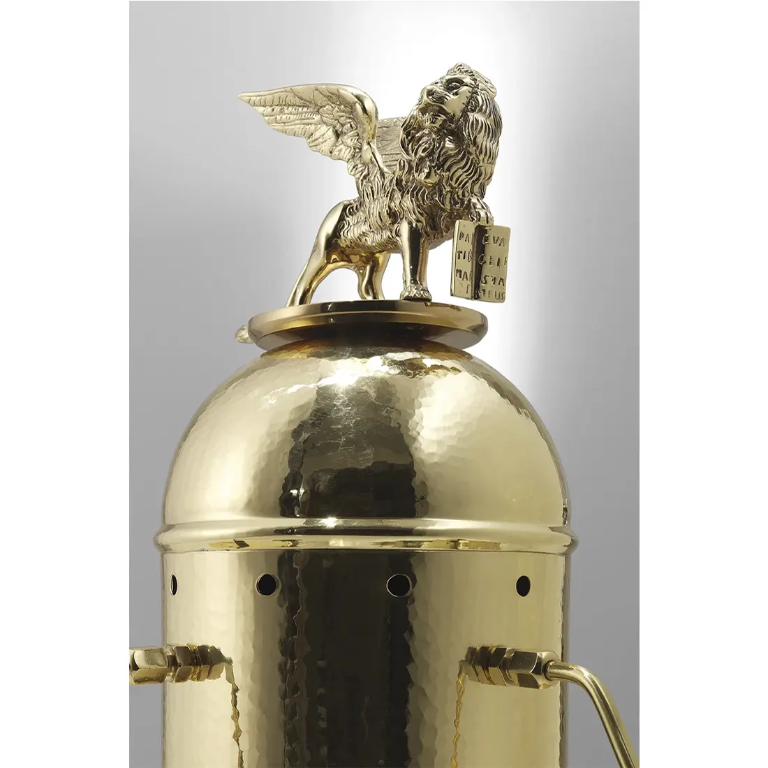The bodywork, made entirely of brass and stainless steel, is surmounted by the unmistakeable brass dome, which is, in turn, gold-plated. The highly skilled workmanship and top-quality finishes highlight the outstanding artisan expertise of La San Marco, while the interior of the machine showcases sophisticated, modern components.