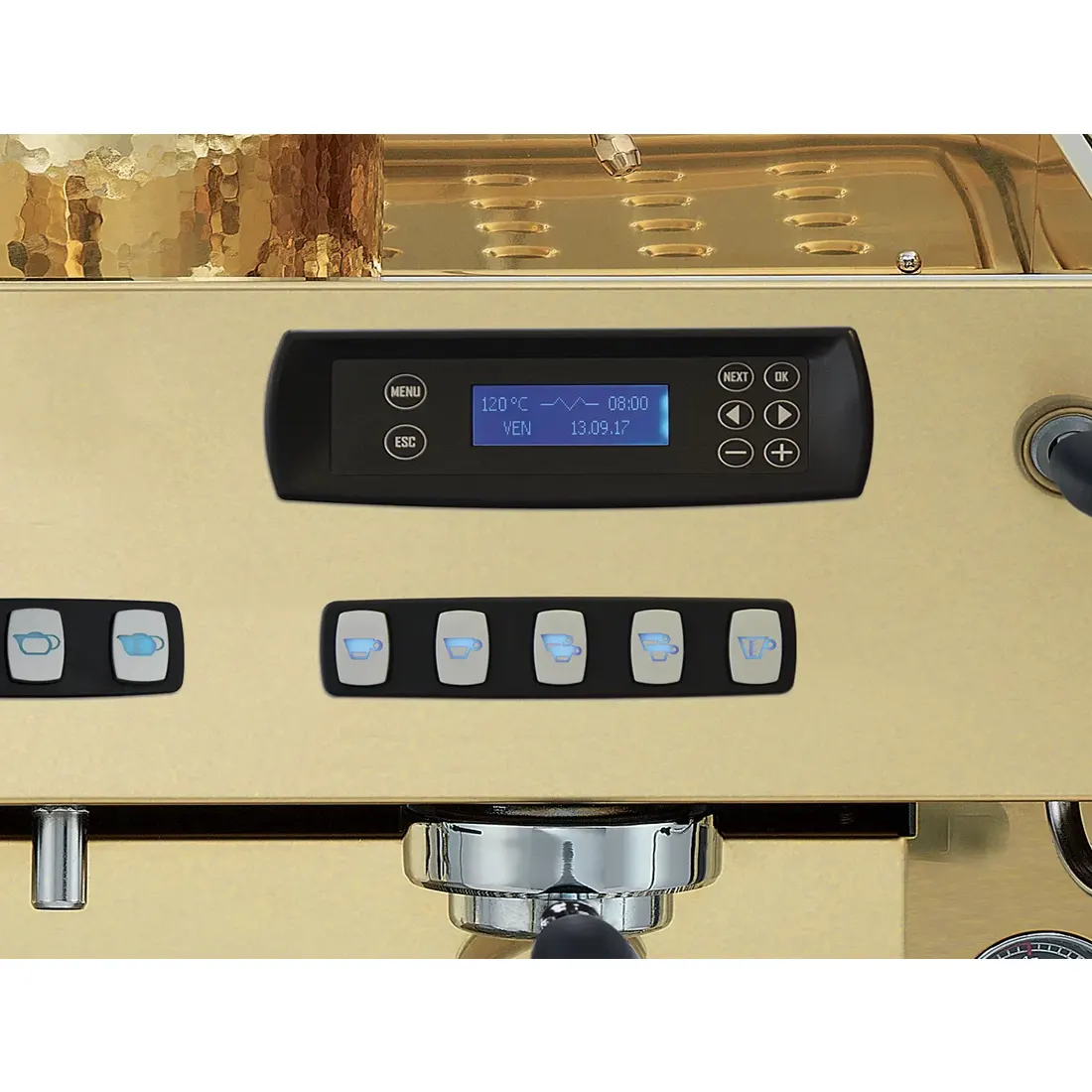 Top 80 Preziosa is the upgraded, visually stunning version of the previous New 80 Preziosa, featuring gleaming gold-plated bodywork, state-of-the-art electronics, revamped keypads and a display through which the operator can control and program the machine’s operating parameters. The result is the perfect combination of classic elegance and cutting-edge technology.