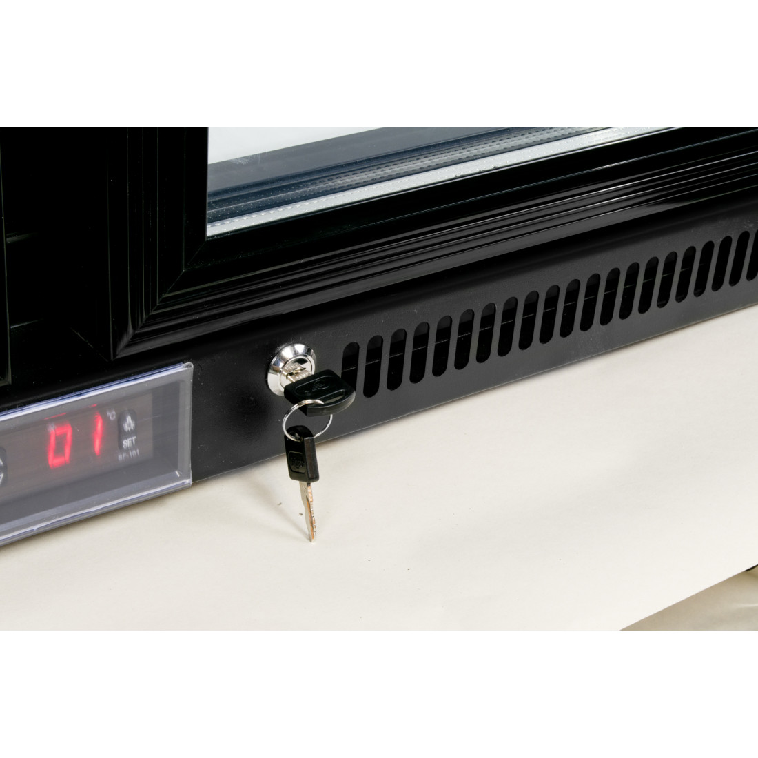 The Prodis NT1BHLOHC 850mm reduced height low profile bottle cooler is ideal for installation in smaller bars thanks to it’s reduced height. The cabinet is fitted with pure white energy efficient LED lighting and benefits from fan assisted cooling for rapid cooling. 2 adjustable plastic coated shelves offer the flexibility to store any size of bottle and a lockable door adds security.